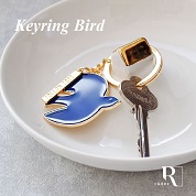 ブルーの鳥のチャームが付いた金属製キーホルダー。